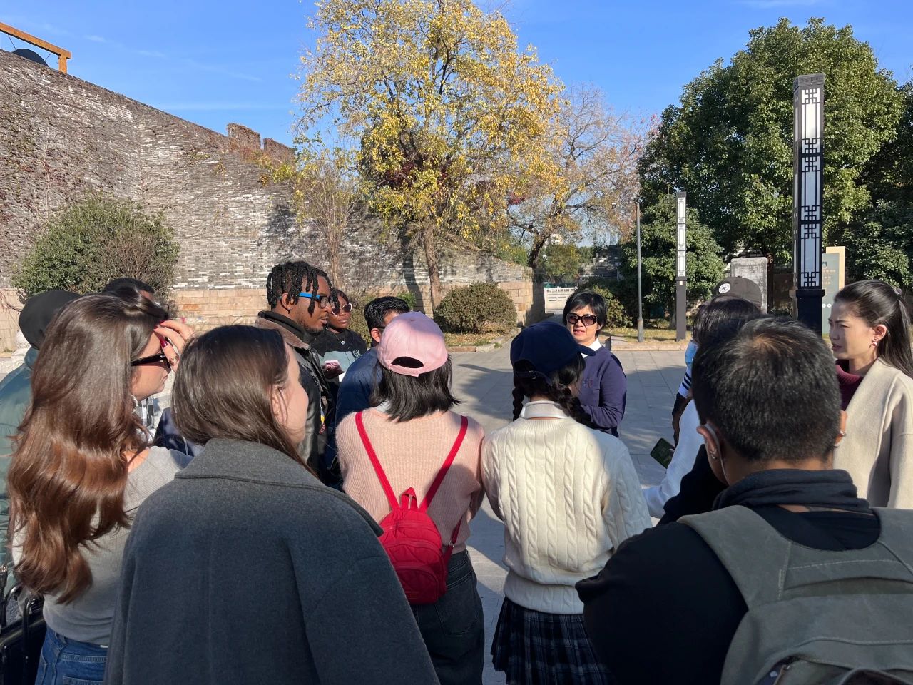 Professor Jiang Xiaoli, Deputy Dean ofSRS, introducedto the studentsthat the Suzhou city wall was built in 514 B.C.E., between Spring and Autumn. Xiangmen, also known as “craftsman gate” or“general gate”, was named after a sword maker who was ordered to set up a furnace to craft swords. Xiangmen is located in the east of Suzhou, and it is an important symbol that contrasts the style of the ancient city with the modern one.