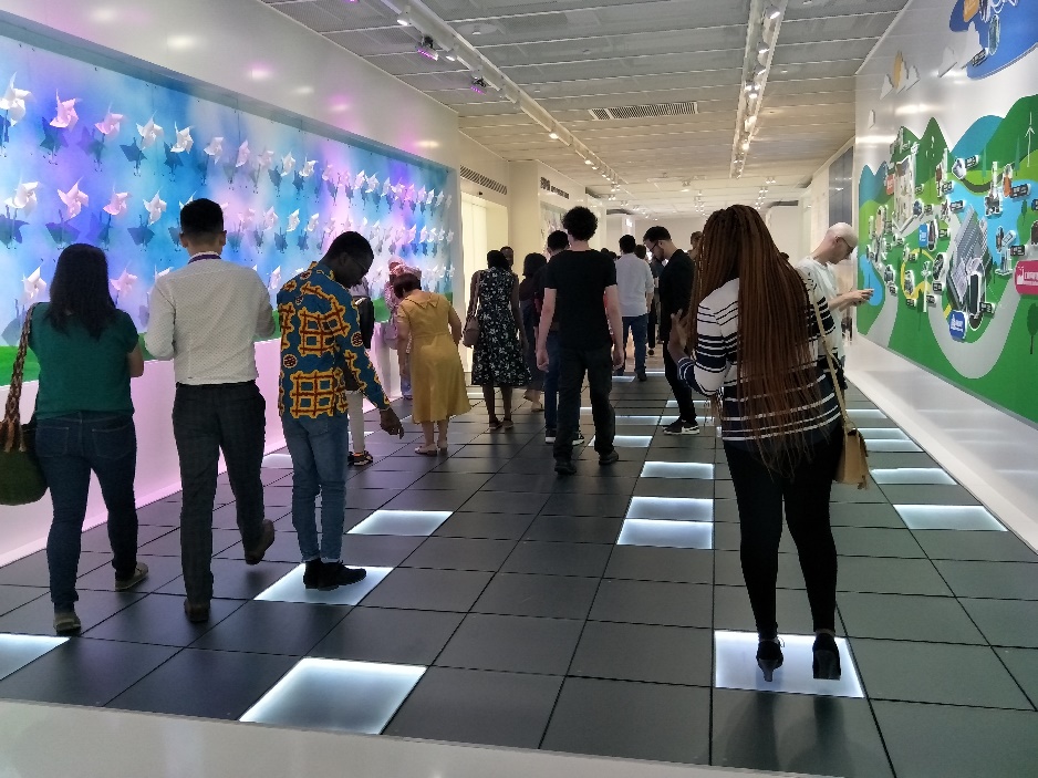 Moving down the Future Energy Pavilion, there isan interactive set up that stood out from the rest of the exhibition.Participants are to step on the tiles on the floor, which then generates energy to move the windmills that are on the wall.