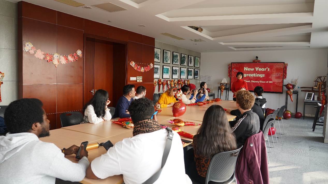 The New Year Celebration of Silk Road School(SRS)was held in Student Activity Room. Professor Jiang Xiaoli, Deputy Dean of SRS, attended the event and delivered a speech, wishing the students a smooth study and happy life in the new year.