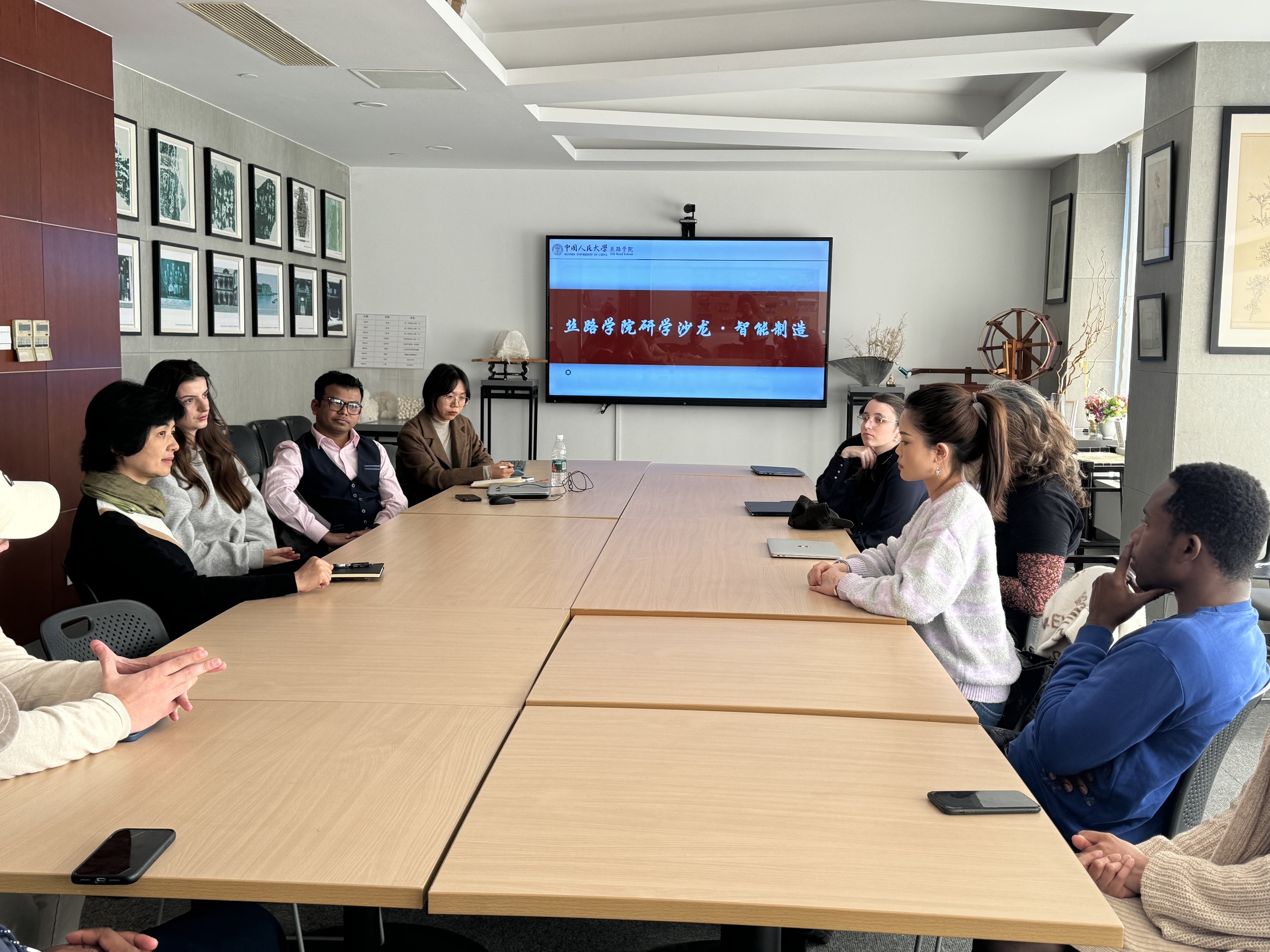 The first Silk Road School Field Study Salon on Intelligent Manufacturing and Technological Innovation commenced on March 20th. Led by Deputy Dean Jiang Xiaoli, students from various countries engaged in discussions at the student activity room.