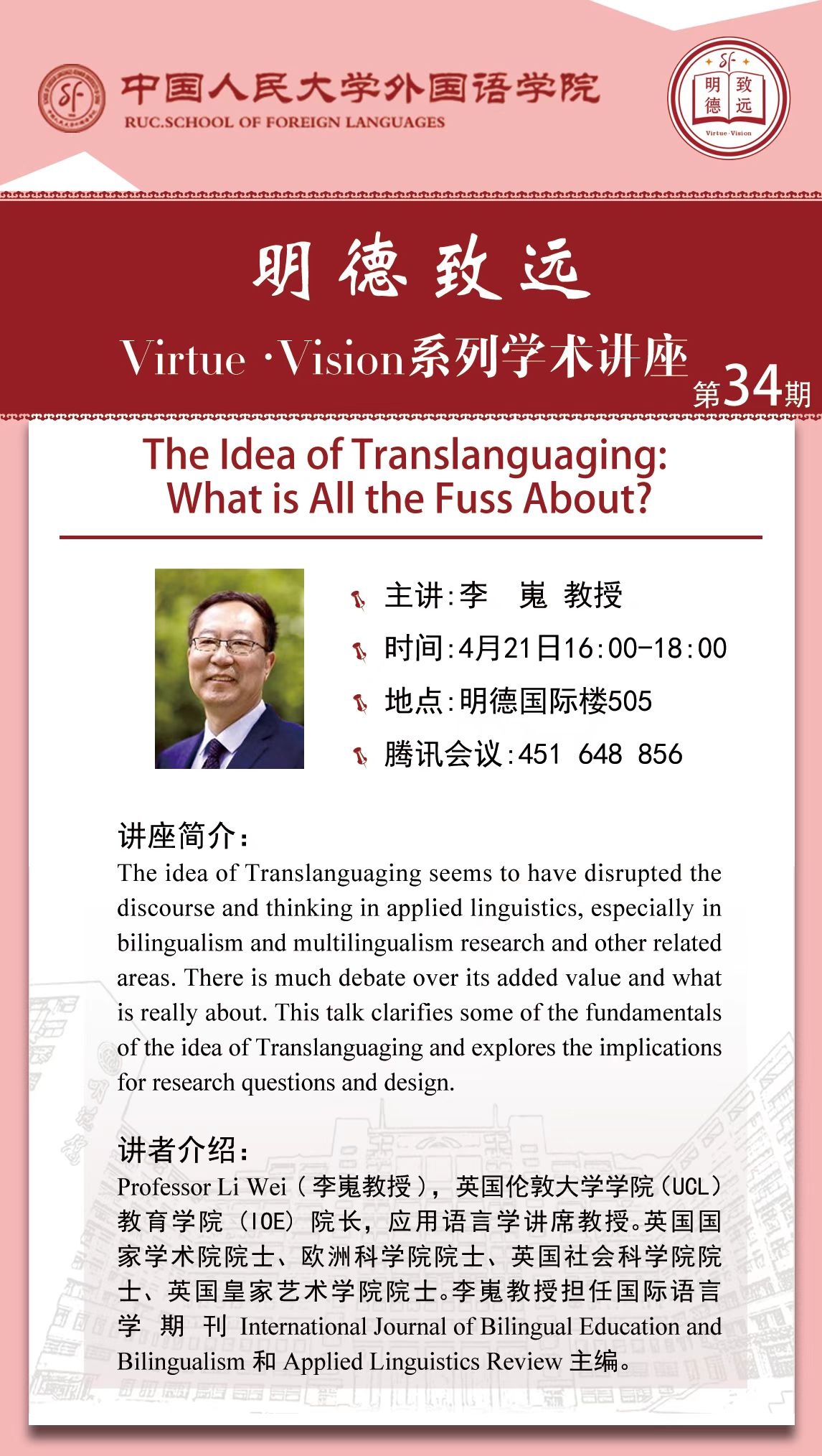 明德致远 Virtue·Vision系列学术讲座: The Idea of Translanguaging What is All the Focus About