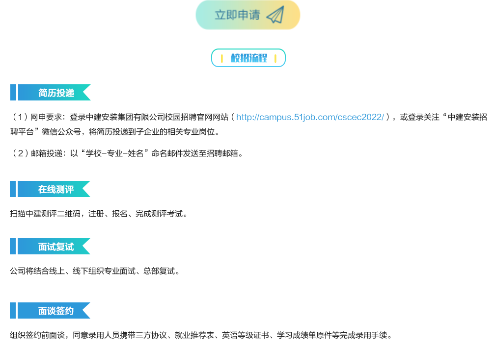 【就业信息】中建安装集团(苏州)有限公司招聘
