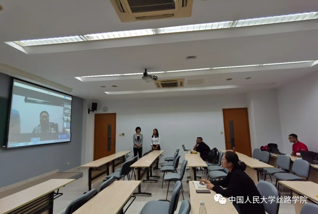 国际关系学院宋伟教授通过腾讯会议进行线上直播教学。各国学生克服时差困难加入直播课堂的学习,符合返校条件的学生在修远楼教室与海外的同学“云端相聚”,这也是自疫情爆发以来色情图