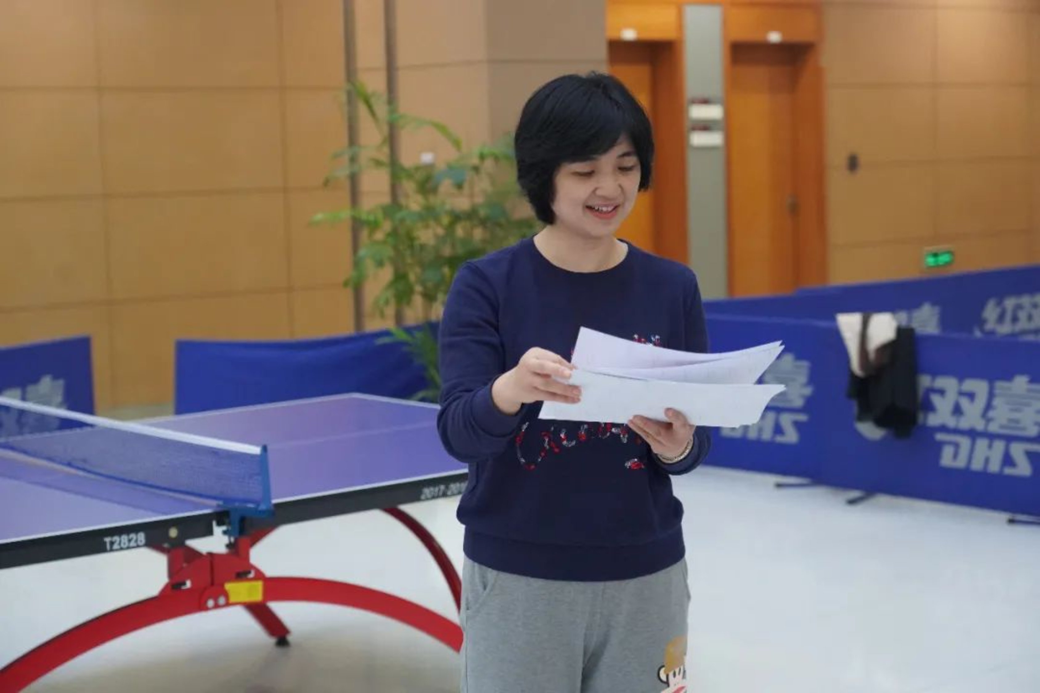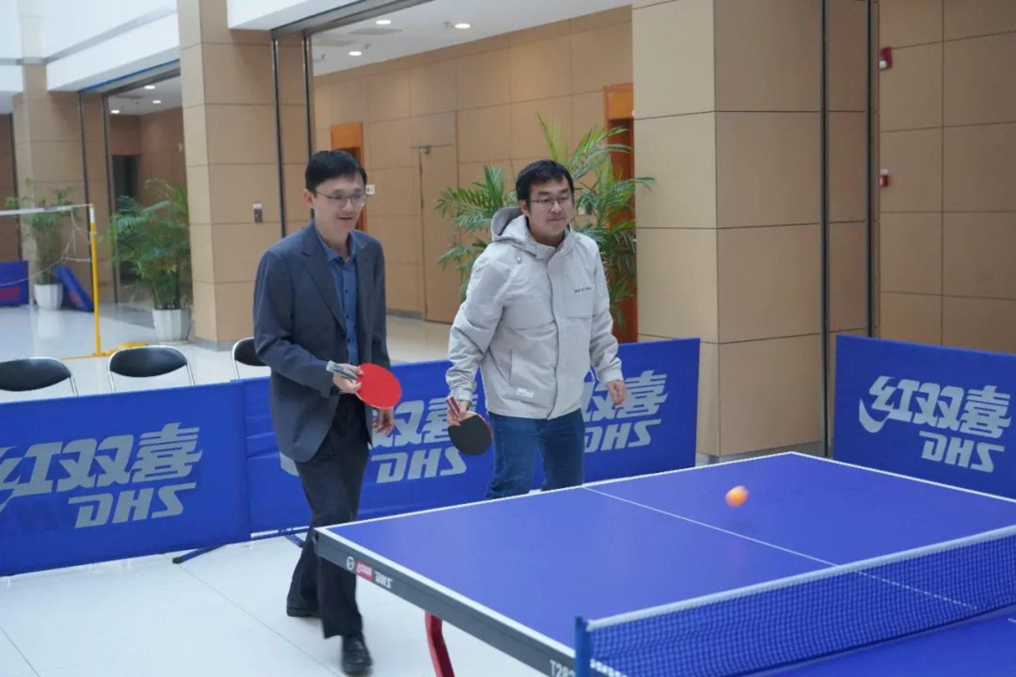 在趣味比赛环节,大家自由下场参赛,秉承着“友谊第一,比赛第二”的竞赛精神,赛出水平,赛出风采。参赛队员在发球抢攻、上步搓球等环节上斗智斗勇,他们身姿矫健、步履轻快,全神贯注地进行推挡扣杀,巧妙运用变幻莫测的旋转球、弧线球,现场喝彩声、助威声响彻整个场馆。