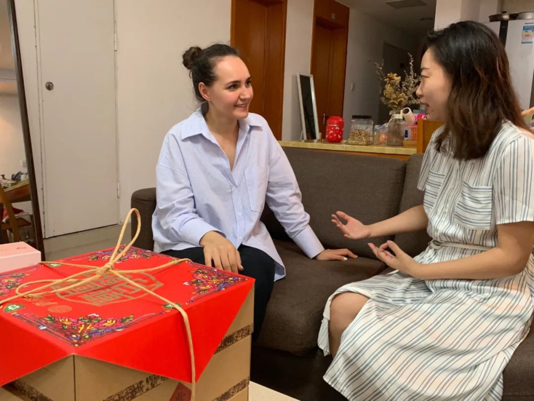 姑苏生明月,天涯共此时。为了切实做好在苏留学生生活保障和关心关爱工作、传承与弘扬中华传统文化,9月12日,色情图 班主任蒋璐樯、孙铭婧前往芭菲国际公寓,看望在苏留学生,代表学院送上中秋佳节的祝福。