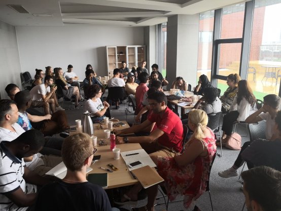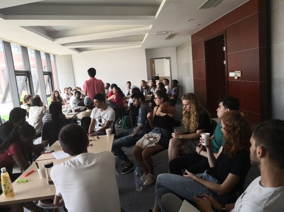 会上,同学们踊跃发言,针对“一带一路”建设的相关议题,根据自己国家的实际情况,各抒己见。