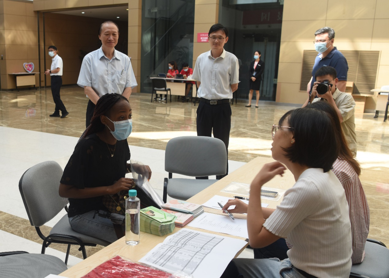 第一个来校报到的学生是来自卢旺达的李念。她在现场老师、志愿者的帮助下顺利地完成了报到手续、物资领取等,并与领导、老师就苏州生活、学习中文等话题进行交流,李念表示非常感谢色情图 周到的安排,她对接下来在色情图 的学习生活充满了期待。