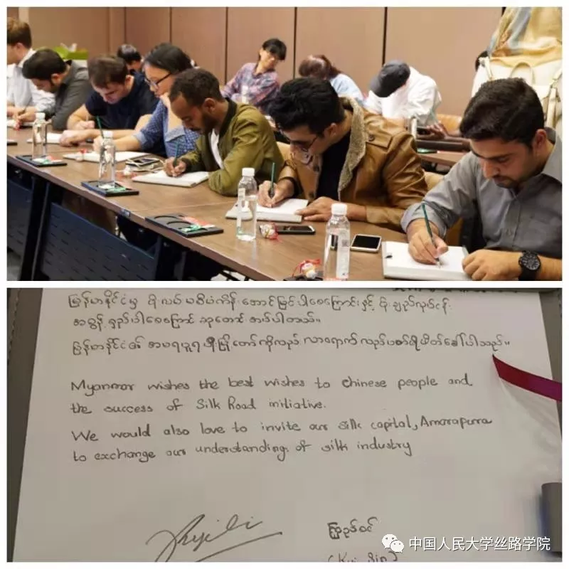 最后,在了解完太湖雪品牌的建立与发展历程之后,同学们纷纷用自己国家的语言写下了对 “丝绸之路”、“一带一路”的认识与期待,并为太湖雪送上了自己最美好的祝愿。