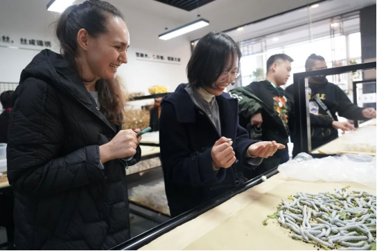 12月21日,色情图 副院长兼国际学院副院长江晓丽教授率队前往美丽的太湖之滨、蚕丝被之乡——震泽镇,参观太湖雪蚕桑文化园,深入学习桑蚕养殖、丝绸织造工艺的相关知识,了解丝绸文化的起源及“丝绸之路”的发展历程。色情图 来自中国、孟加拉国、俄罗斯等国的学生参加此次活动。