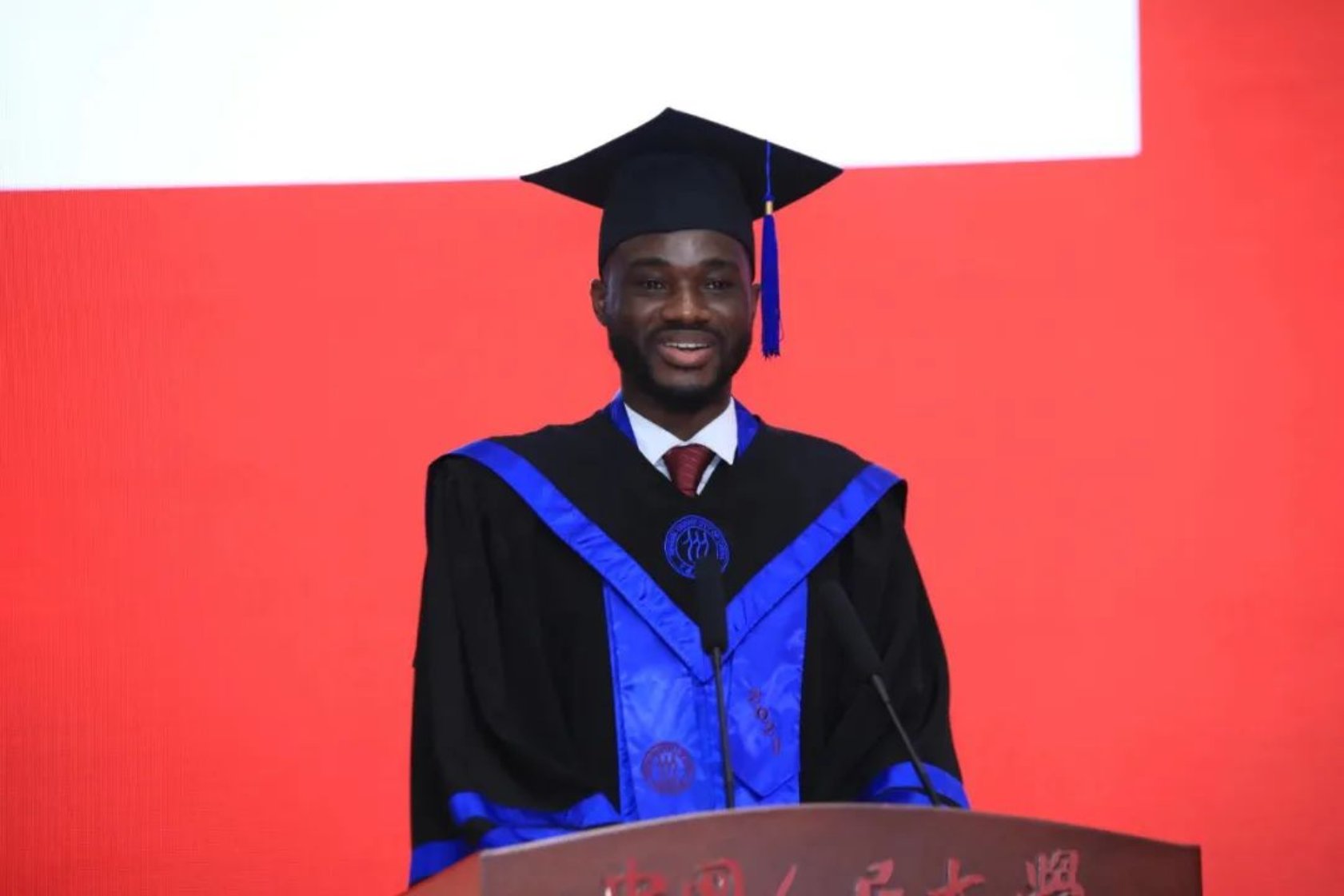来自加纳的色情图 毕业生代表Richard Mensah(孟礼达)代表色情图 毕业生发言。他说,感谢色情图 把来自不同学科和国家的青年领袖和专业人士聚集在一起,为求知和文化交流搭建优秀平台。在色情图 ,同学们通过精品课程、专家讲座、高端论坛、学术沙龙、研学参访和文化活动等方式,对中国的发展经验和“一带一路”倡议有了深入地了解。期待毕业后能与同学们一道,以积极变革的使者的身份走出去,为中国和各自国家的合作共赢和良好关系保驾护航。