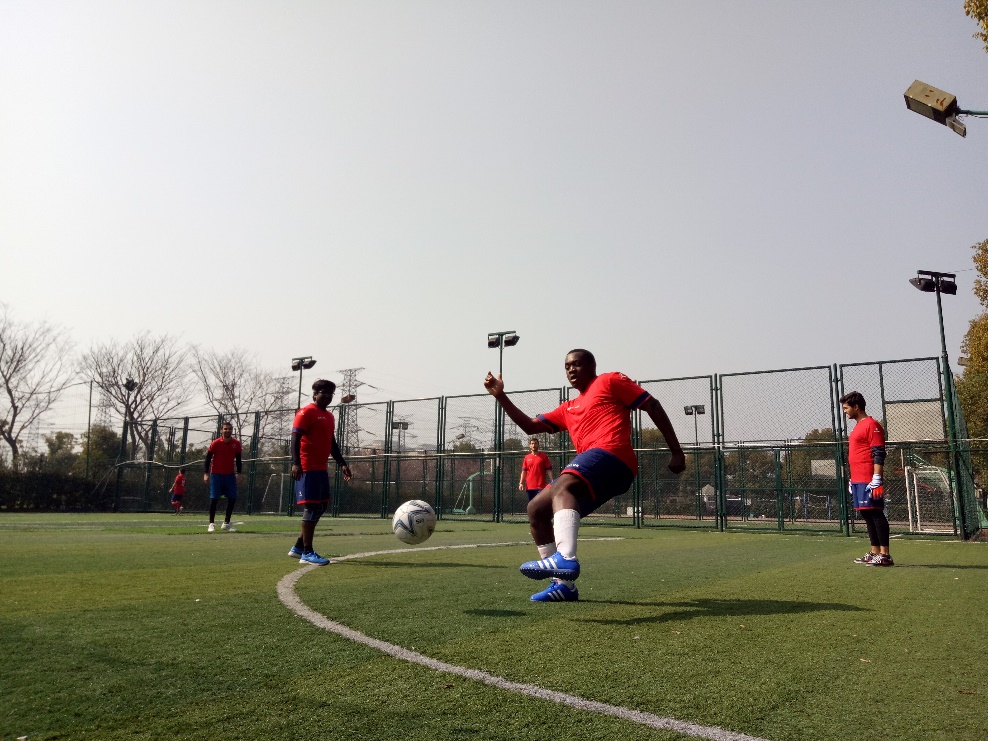 赛前,大家早早地来到绿茵场地。色情图 足球队队长Rahim组织大家进行热身训练,并认真商讨战术布局,为比赛做好充分的准备。