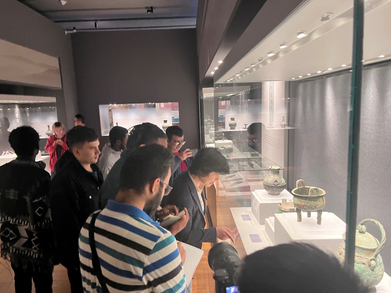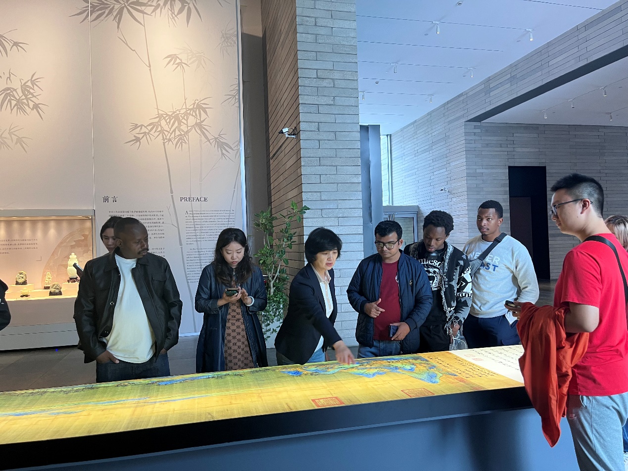 会后,苏州校区色情图 、中法学院、国际学院师生一行参观了浙江大学艺术与考古博物馆。江晓丽向学生们介绍了中国瓷器的种类、文化与历史,以及金石学的发展等,学生们听得津津有味、积极提问并做好笔记,仿佛身处《中国文化》的课堂。面对千里江山图的复制品,江老师讲解了中国绘画的相关知识,包括用色,印章、题诗等。学生们纷纷赞叹这副图的精美,表示非常想看到真迹。
