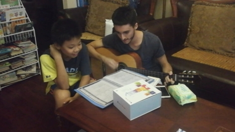 饭后,法国学生毛雨乐和苏州结对家庭的大儿子还为大家唱起了小曲,引来阵阵掌声。