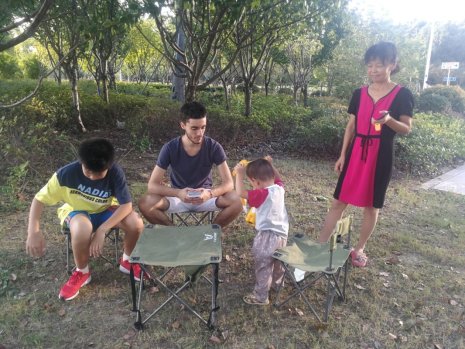 中国家庭还精心地为我们的留学生们准备了野外烧烤,安帐篷、搭桌椅、串食物、做烧烤,不知不觉中,大家已成为了一家人。