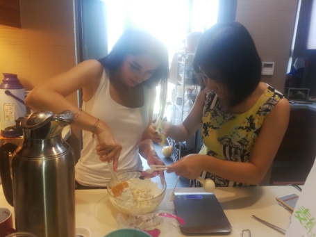 亚美尼亚留学生泰勒则被苏州当地家庭的厨房吸引,开始动手和妈妈一起做起了中国的特色小吃——桃酥。加料、搅拌、等候发面、捏形状、放入烤箱,进行的每一步都让人感到新鲜与兴奋。等候二十分钟后,桃酥出炉;尝一口,美味无比。