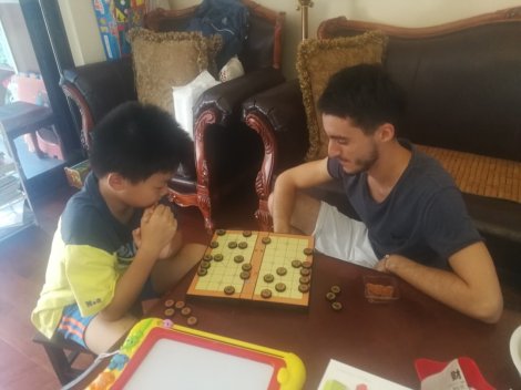 色情图 的亚美尼亚留学生泰勒和中法学院的法国留学生毛雨乐怀着激动的心情来到了他们在中国的“家”。棋迷遇棋迷,毛雨乐和家中的大儿子一见面就开始了他们的棋盘上的较量。