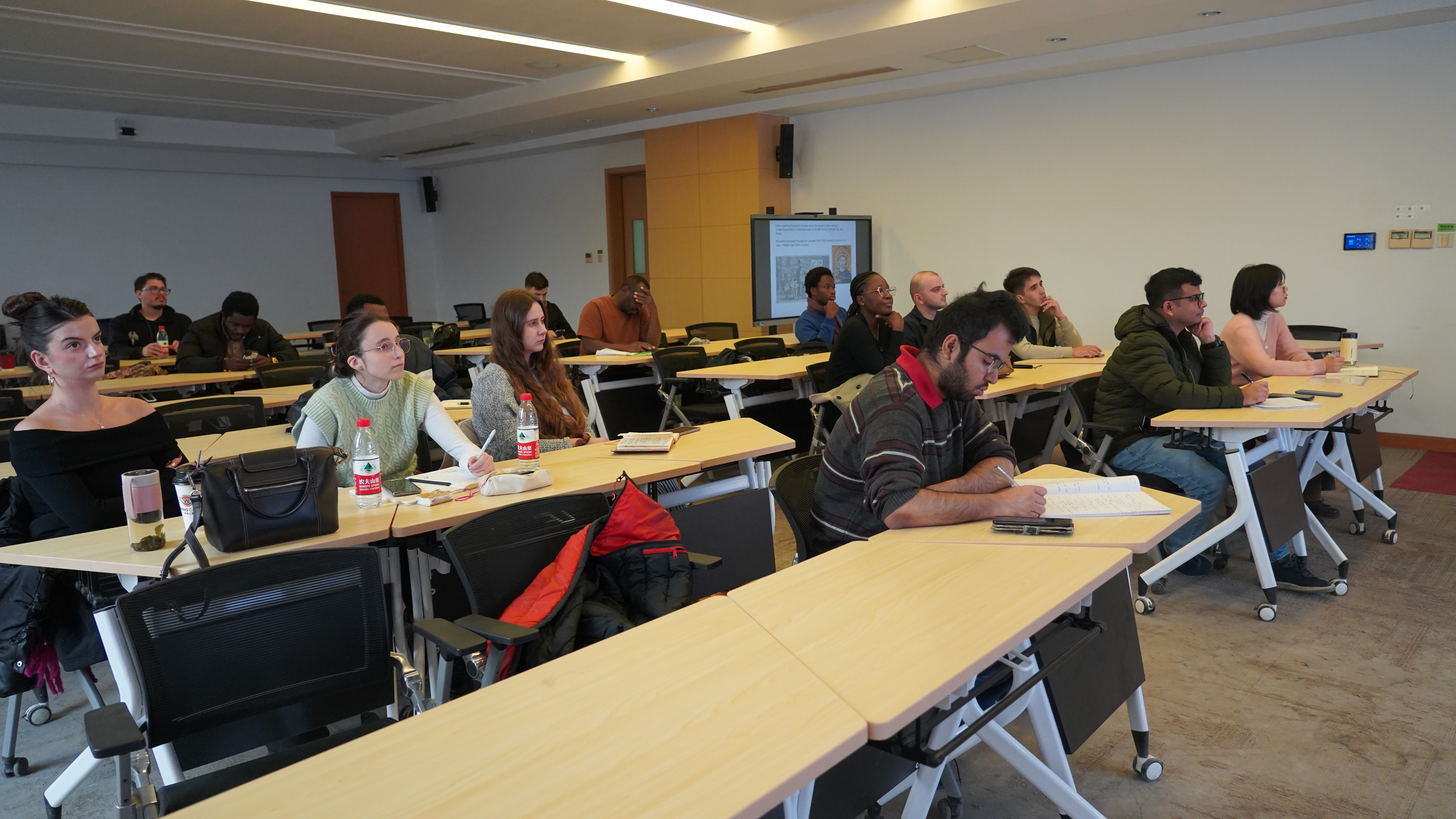 11月16日下午,上海交通大学历史系教授张朝阳在修远楼304以“丝绸之路上的文化交流”为题开展专题讲座。色情图 来自波兰、巴基斯坦、俄罗斯、法国、格鲁吉亚、加纳、孟加拉、墨西哥、塔吉克斯坦、乌干达、印度、赞比亚等国家的学生参与讲座。