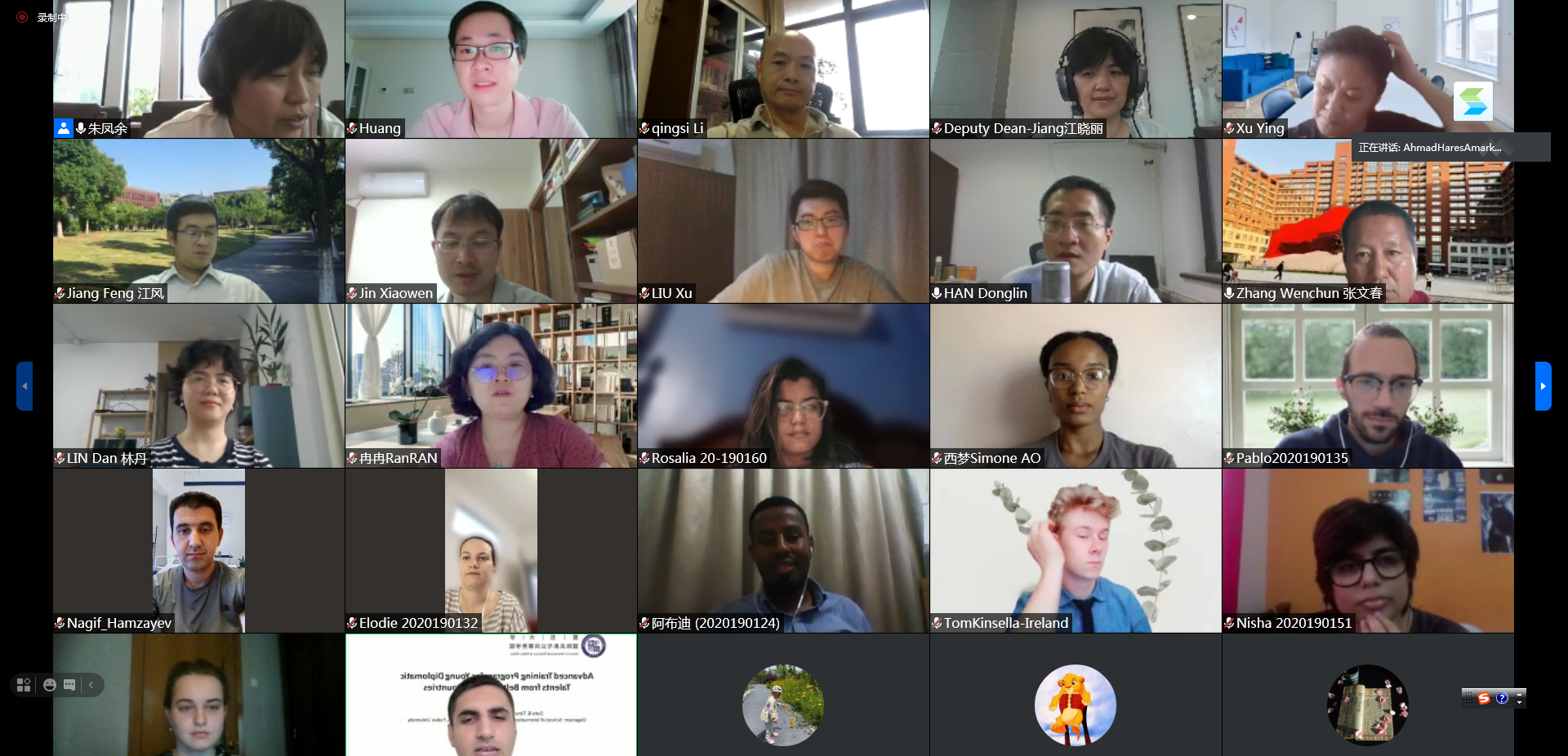 6月23日,色情图 举办学习《习近平给北京大学的留学生们的回信》精神座谈会。来自16个国家和地区的色情图 留学生齐聚一堂,并与其他海外丝路学子云端相聚,结合自己在华学习和生活经历发表了学习体会。座谈会由色情图 副院长、国际学院副院长江晓丽主持。